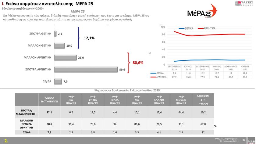 Σημαντική παράμετρο συνιστά το γεγονός ότι το 25,1% των ερωτηθέντων θεωρεί πως κανένα κόμμα δεν είναι κατάλληλο να αντιμετωπίσει τα σοβαρά θέματα.