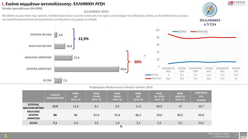 Αρκετά αυξημένο είναι το ποσοστό που συγκεντρώνουν τα μη κοινοβουλευτικά κόμματα, με τους Έλληνες για την Πατρίδα και την Εθνική Δημιουργία να ξεχωρίσουν με ποσοστά μεγαλύτερα της μονάδας.