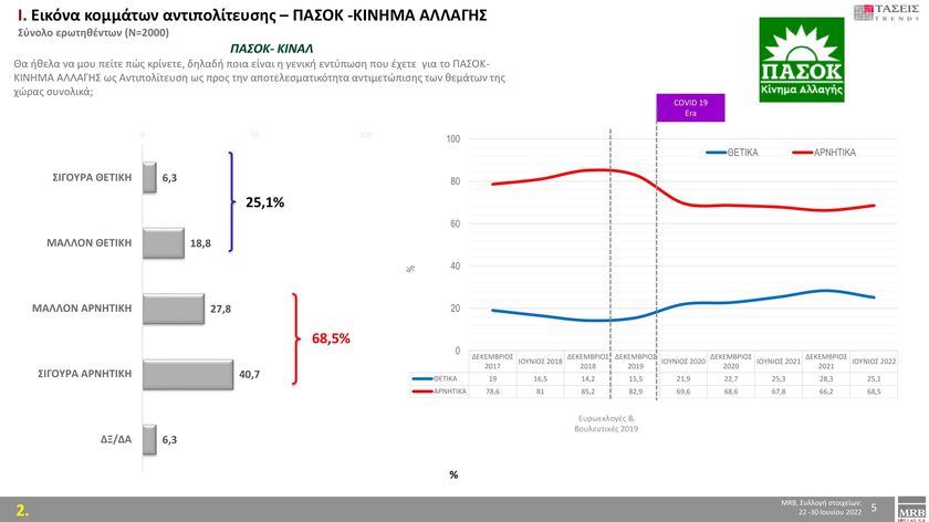 Στην τρίτη θέση με διψήφιο ποσοστό βρίσκεται το ΠΑΣΟΚ – ΚΙΝΑΛ (12,2%), στην τέταρτη θέση βρίσκεται το ΚΚΕ (4,7%), στην πέμπτη θέση βρίσκεται η Ελληνική Λύση (4,5%) και στην έκτη θέση το Μέρα25 (3,1%).