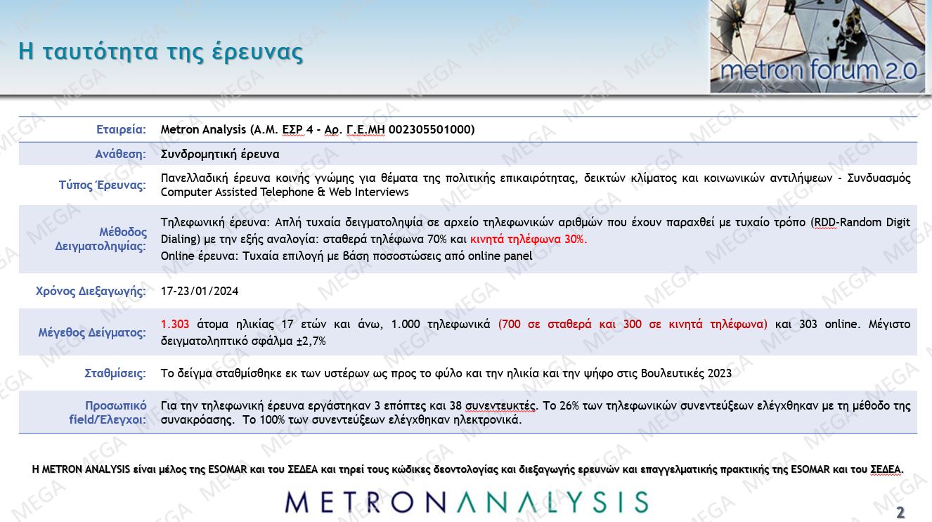 Αντίστοιχα, άνοδο εμφανίζει στον χώρο της ακροδεξιάς και τη Ελληνική Λύση, στο 6,6%, την ώρα που η Νέα Αριστερά εμφανίζει μια μικρή άνοδο στο 2,4%.