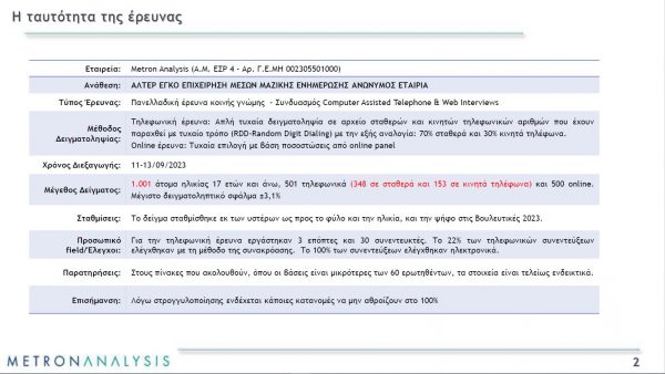 Αυτό τουλάχιστον δείχνει να είναι το συμπέρασμα της έρευνας που πραγματοποίησε η Metron Analysis για το Mega στο κεντρικό του δελτίο.