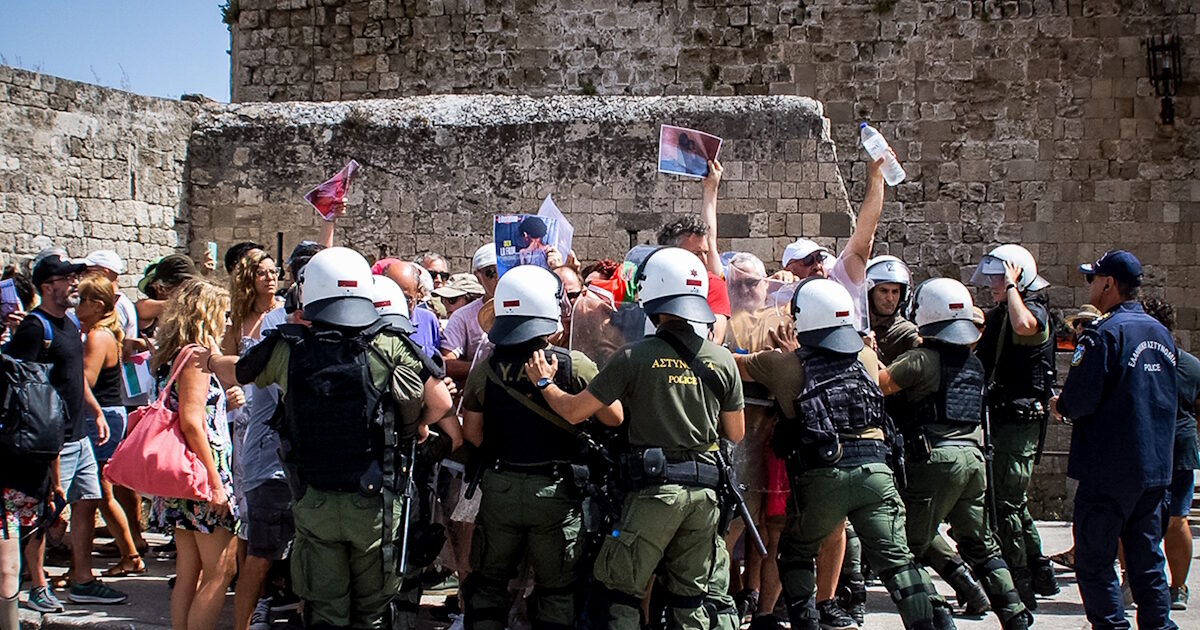 Δύο κόσμοι στη Ρόδο για τους Ισραηλινούς τουρίστες. Το κρουαζιερόπλοιο «Crown Iris» με 660 επιβάτες από το Ισραήλ έδεσε στο λιμάνι του νησιού, όπου συγκεντρώθηκαν διαδηλωτές και δυνάμεις της αστυνομίας, ενώ εκπρόσωποι τοπικών αρχών και φορέων καλωσόρισαν τους επισκέπτες.