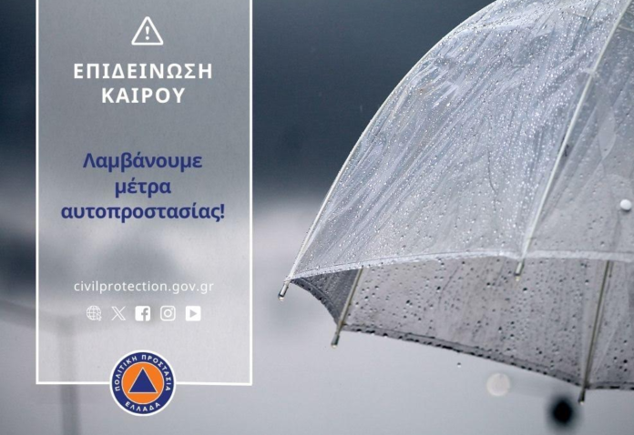 Σύμφωνα με το Έκτακτο Δελτίο Επιδείνωσης Καιρού (5/2024) που εκδόθηκε από την Εθνική Μετεωρολογική Υπηρεσία σήμερα Σάββατο 24 Φεβρουαρίου 2024 επιδείνωση του καιρού με ισχυρές βροχές και καταιγίδες προβλέπεται στο μεγαλύτερο μέρος τη χώρας από τις βραδινές ώρες της Κυριακής (25-02-24) μέχρι και τα ξημερώματα της Τρίτης (27-02-24). Τα έντονα φαινόμενα που θα ξεκινήσουν από τα δυτικά, γρήγορα θα επεκταθούν στα κεντρικά και ανατολικά ηπειρωτικά, τις Κυκλάδες και την Κρήτη και βαθμιαία στα νησιά του ανατολικού Αιγαίου και τα Δωδεκάνησα. Τα φαινόμενα θα συνοδεύονται από ενισχυμένους νοτιοανατολικούς ανέμους εντάσεως έως 7 και τοπικά στο Ιόνιο 8 μποφόρ και πιθανώς από χαλαζοπτώσεις.