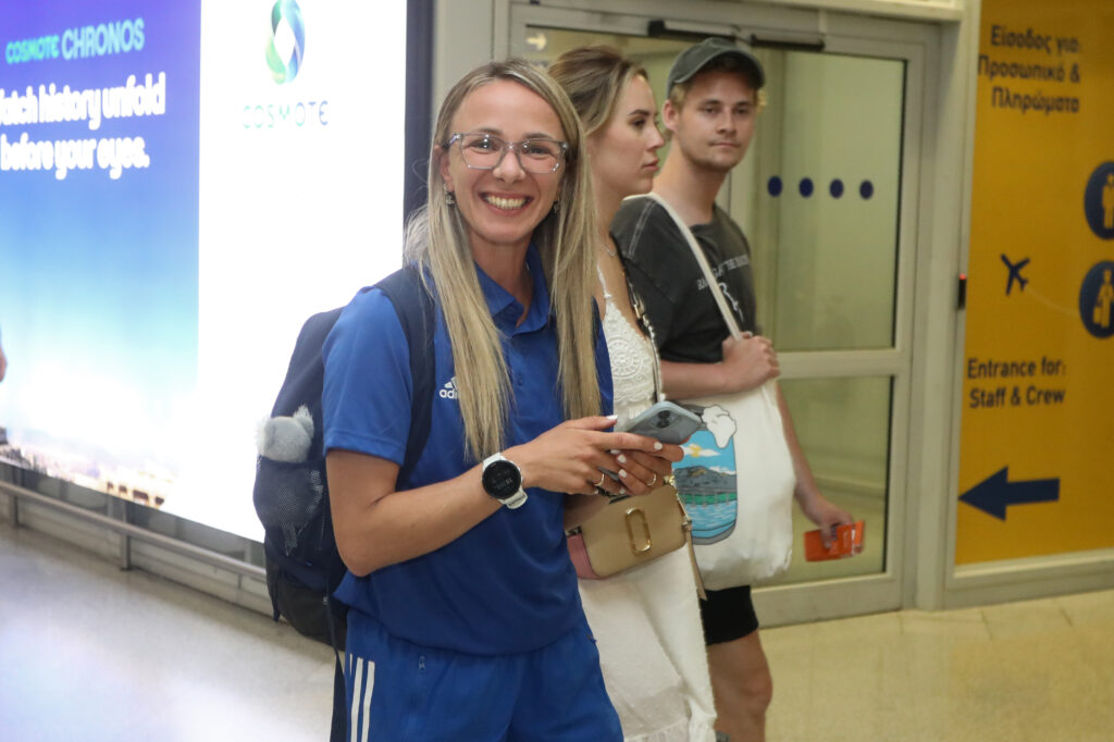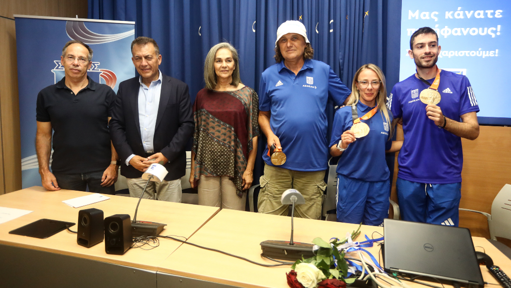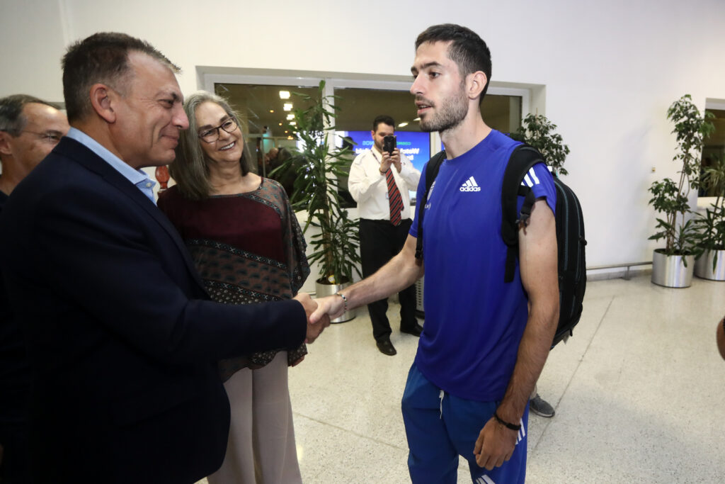 Τους αθλητές υποδέχθηκαν η πρόεδρος του ΣΕΓΑΣ, Σοφία Σακοράφα, με τον αναπληρωτή υπουργό Αθλητισμού, Γιάννη Βρούτση, και τον γενικό γραμματέα Αθλητισμού, Γιώργο Μαυρωτά.