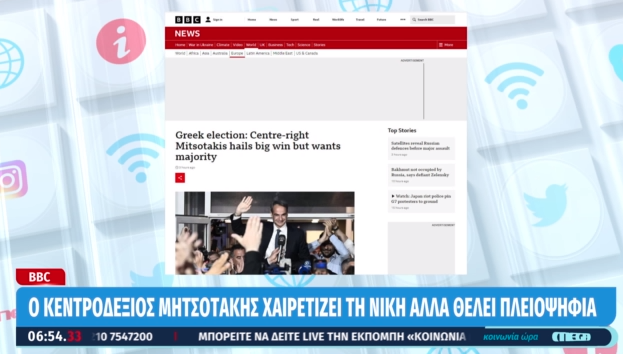 BBC: «Ο κεντροδεξιός Μητσοτάκης χαιρετίζει τη νίκη αλλά θέλει πλειοψηφία»