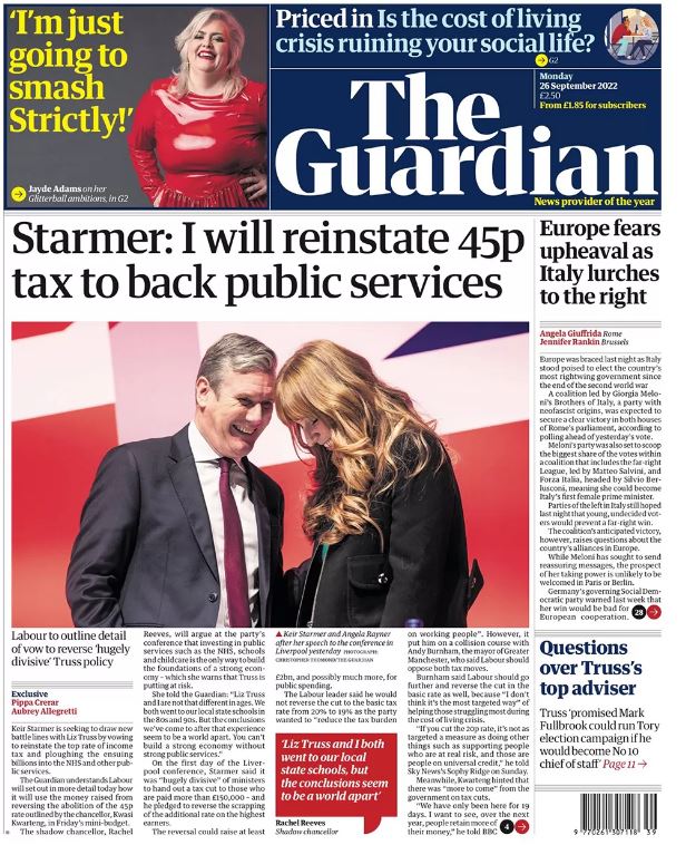 «Η Μελόνι υποβαθμίζει τις μεταφασιστικές ρίζες του κόμματός της και το απεικονίζει ως μια κυρίαρχη ομάδα όπως οι Συντηρητικοί της Βρετανίας. Έχει δεσμευτεί να στηρίξει τη δυτική πολιτική για την Ουκρανία και να μην πάρει ρίσκα με τα εύθραυστα οικονομικά της Ιταλίας», σημειώνεται ακόμη στο δημοσίευμα, προσθέτοντας πως «Οι ευρωπαϊκές πρωτεύουσες και οι χρηματοπιστωτικές αγορές θα εξετάσουν προσεκτικά τις πρώτες της κινήσεις – ξεκινώντας από τις υπουργικές της επιλογές – δεδομένου του ευρωσκεπτικιστικού παρελθόντος της και της αμφίθυμης θέσης των συμμάχων της για τη Ρωσία».