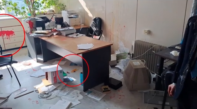 «Ένας κρατούσε ένα δοχείο με κόκκινη μπογιά, άλλοι είχαν αυγά στα χέρια. Εκείνος με την μπογιά την εκσφενδόνισε σε όλο τον χώρο. Οι άλλοι πετούσαν αυγά. Η φοιτήτρια ήταν έντρομη», περιέγραψε ο καθηγητής.