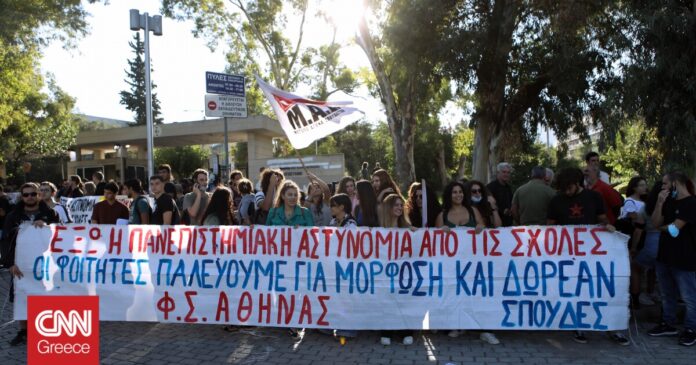 »Θέλουν να βάλουν οριστική ταφόπλακα στο πανεπιστημιακό άσυλο που κατακτήθηκε με αγώνες και θυσίες του φοιτητικού και του ευρύτερου νεολαιίστικου και εργατικού κινήματος” και απαιτούν τη διάλυση των ΟΠΠΙ.