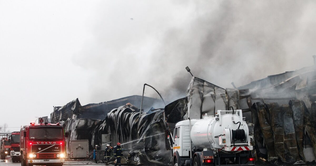 Όπως φαίνεται και στις εικόνες από drone η καταστροφή στο εργοστάσιο είναι βιβλική με καπνούς να αναδύονται ακόμη από τα καμμένα υλικά.