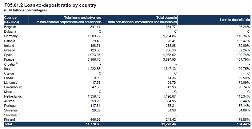 Έτσι, η σχέση Δανείων προς Καταθέσεις διαμορφώθηκε σε ποσοστό χαμηλότερο του 60% (59,24%), τη στιγμή που ο μέσος όρος της ευρωζώνης είναι 104%.