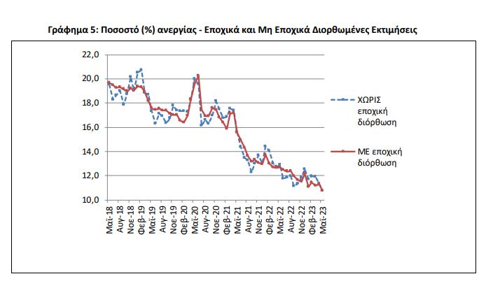 Υποχώρησε η ανεργία τον Μάιο του 2023 σε σχέση με τον αντίστοιχο μήνα του 2022, όπως προκύπτει από σχετικά στοιχεία της ΕΛΣΤΑΤ.