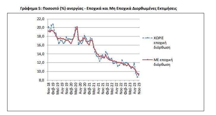 Στο επίπεδο του 9,4% ανήλθε το εποχικά διορθωμένο ποσοστό ανεργίας τον Νοέμβριο του 2023 έναντι του αναθεωρημένου προς τα άνω 11,9% τον αντίστοιχο μήνα 2022 και του αναθεωρημένου προς τα κάτω 9,4% τον Οκτώβριο του 2023, όπως αναφέρει σε ανακοίνωσή της η ΕΛΣΤΑΤ.