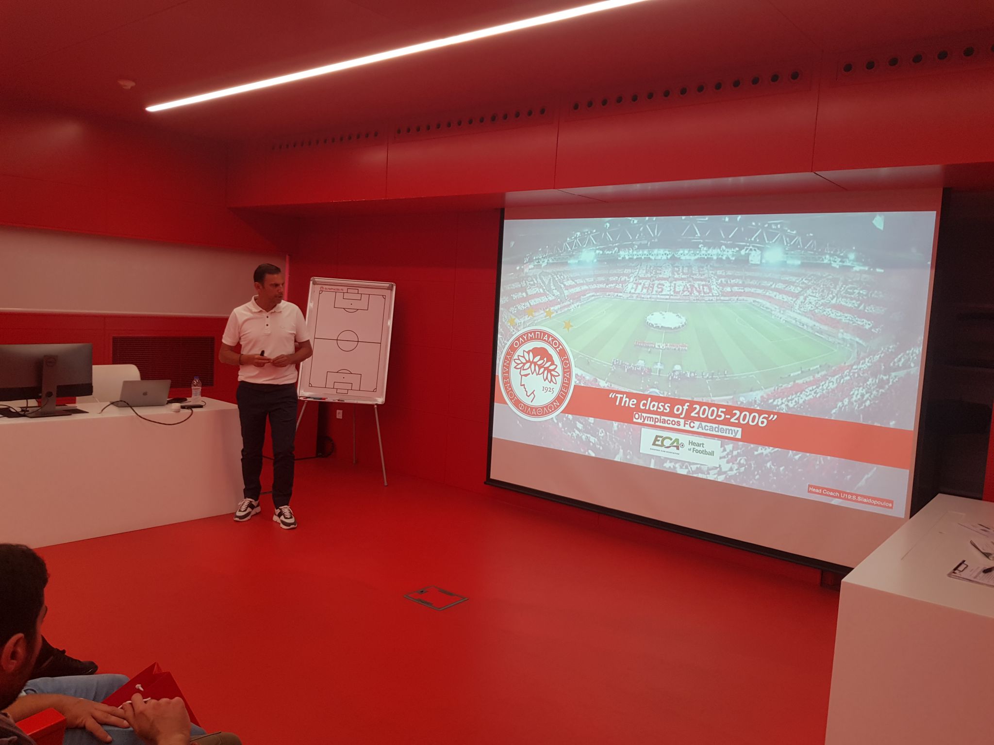 Το ECA επέλεξε τον Ολυμπιακό για να παρουσιάσει τον τρόπο λειτουργίας της ακαδημίας του στα υπόλοιπα μέλη του οργανισμού, τα οποία προέρχονται από ομάδες όλης της Ευρώπης. Συγκεκριμένα, από τα εκατοντάδες μέλη του, το European Club Association επέλεξε επτά ομάδες για να παρουσιάσουν τον τρόπο λειτουργίας τους και οι “ερυθρόλευκοι” ήταν ανάμεσα σε αυτές, όπως και οι Μπάγερ Λεβερκούζεν, Άγιαξ, Σπόρτινγκ Λισαβόνας, Ρέιντζερς, Ίντερ και Λέγκια Βαρσοβίας.