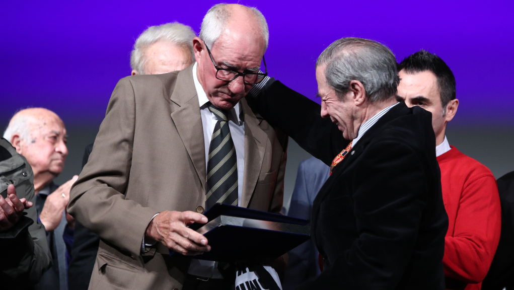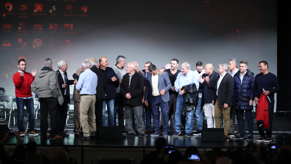 Oι παλαίμαχοι ποδοσφαιριστές του Εθνικού βρέθηκαν όλοι μαζί στη σκήνη αναπολώντας τις “ένδοξες” στιγμές του πειραϊκού συλλόγου. (EUROKINISSI)