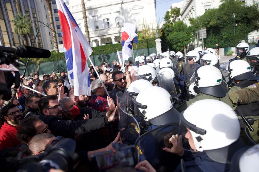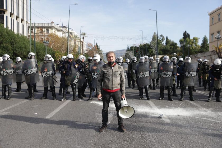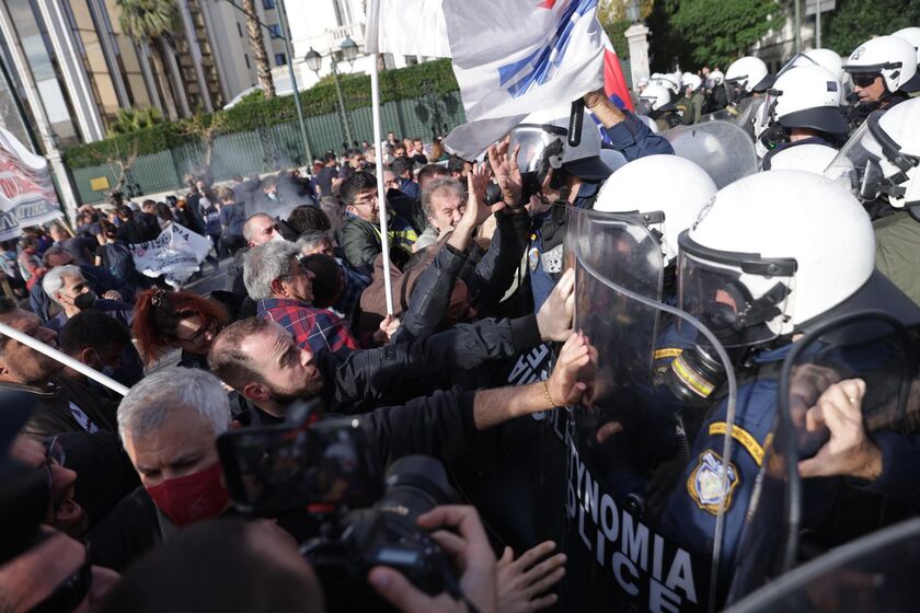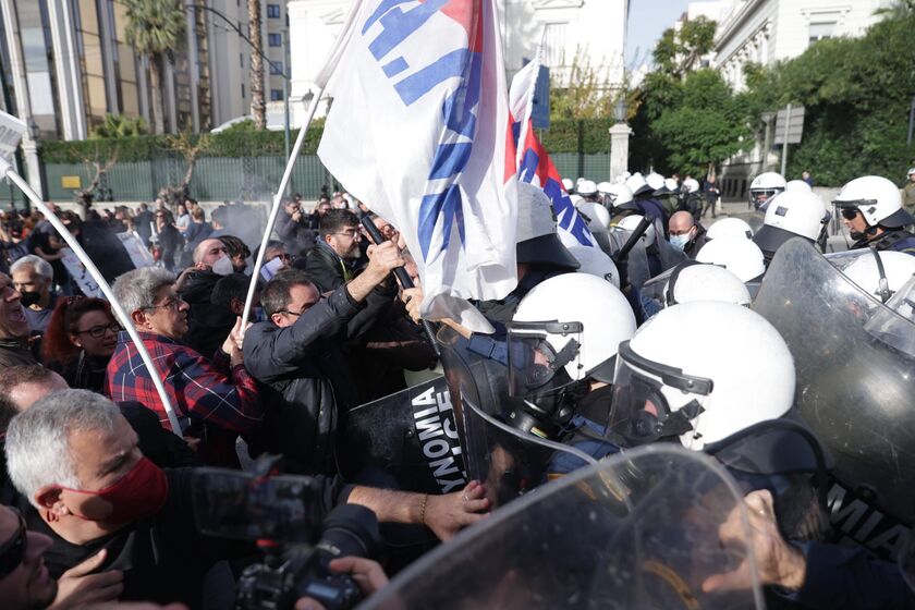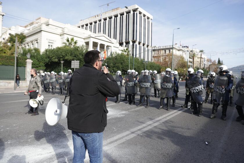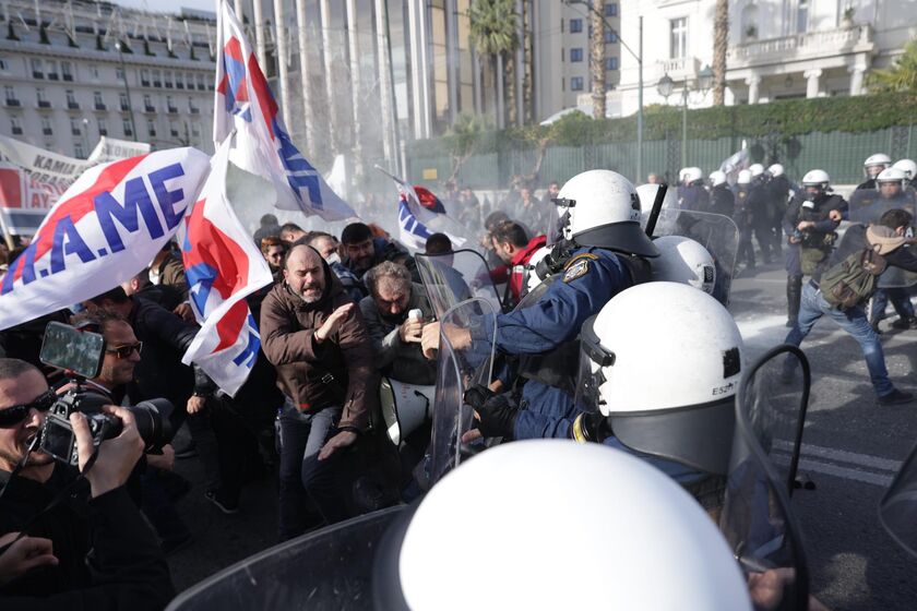Ένταση σημειώθηκε έξω από τη Βουλή, όπου ομάδα συγκρούστηκε με δυνάμεις των ΜΑΤ στο περιθώριο της πορείας των εκπαιδευτικών και άλλων συνδικαλιστικών οργανώσεων.