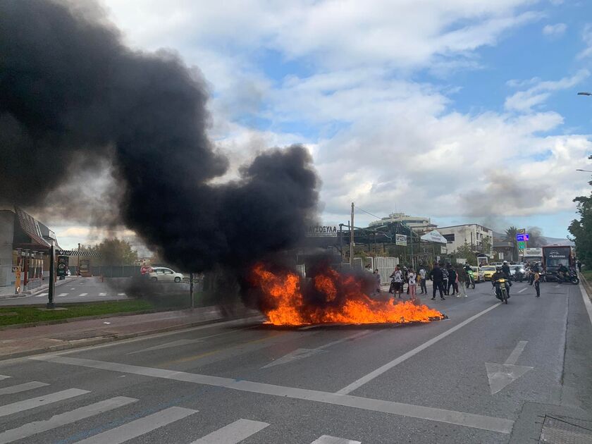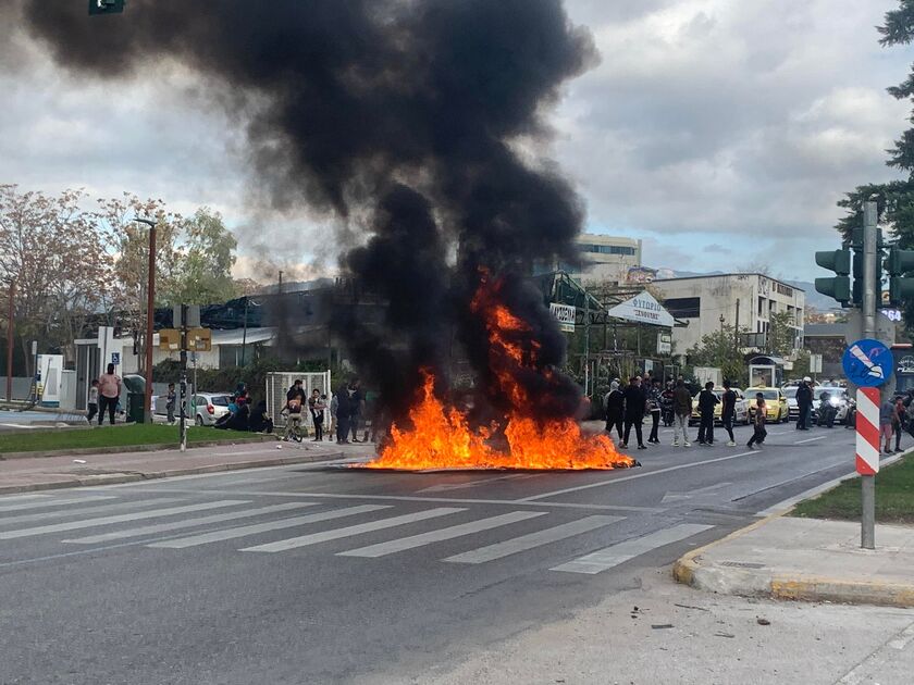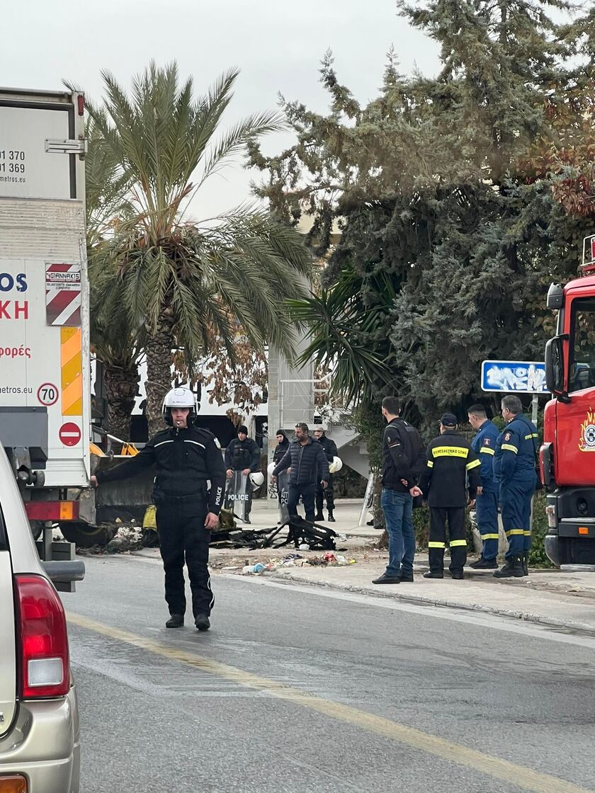 Κατά τη διάρκεια της έντασης, οι συγκεντρωμένοι έκαψαν λάστιχα και κάδους, ενώ στο σημείο έχουν έσπσευσαν δυνάμεις της Πυροσβεστικής και ΟΠΚΕ.