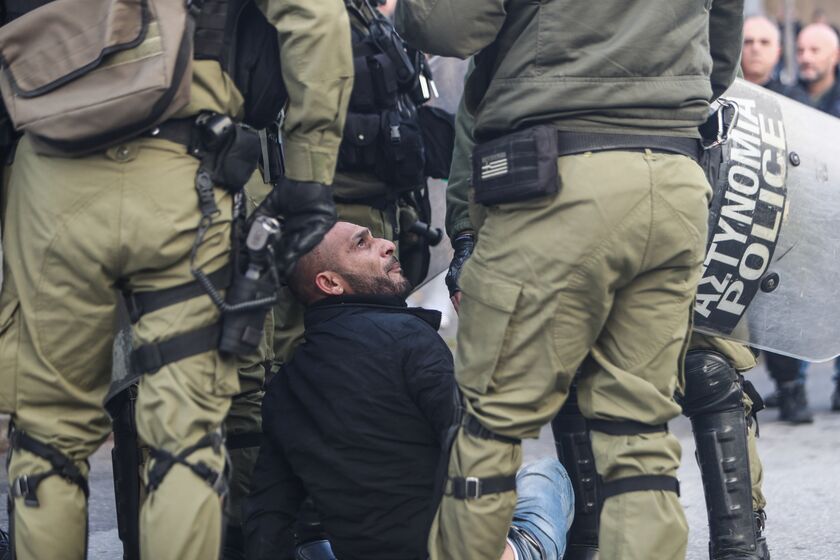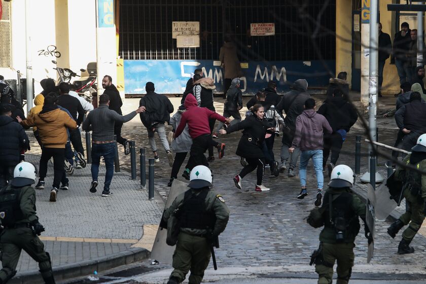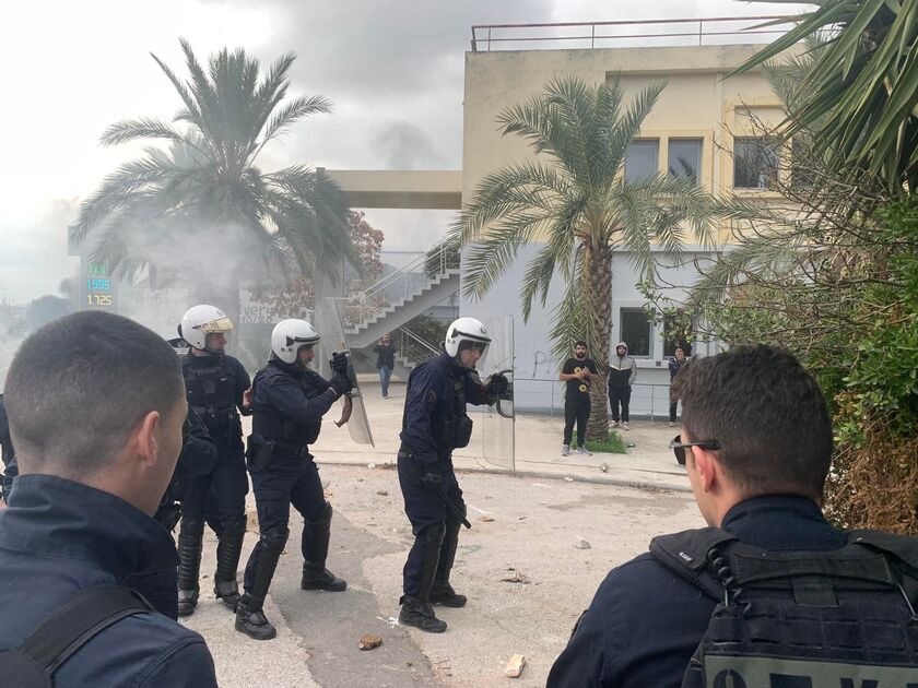 Οι αστυνομικοί τους απώθησαν, ενώ προχώρησαν και σε μία προσαγωγή.