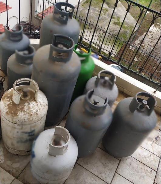 Κατά τη διάρκεια της έρευνας, βρέθηκαν σε διάφορους χώρους της οικίας (εσωτερικό και προαύλιο χώρο), καθώς και σε Ι.Χ.Φ. αυτοκίνητο ιδιοκτησίας του συλληφθέντα, κατάλληλη συνδεσμολογία για την επαναγέμιση κενών φιαλών με λαθραίο υγραέριο.