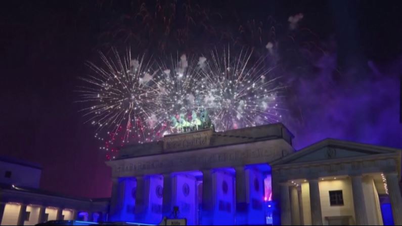 Μπροστά από την φωτισμένη Πύλη του Βρανδεμβούργου στο Βερολίνο, χιλιάδες κόσμος υποδέχεται το 2024, με ευχές για υγεία και ειρήνη σε όλο τον πλανήτη.
