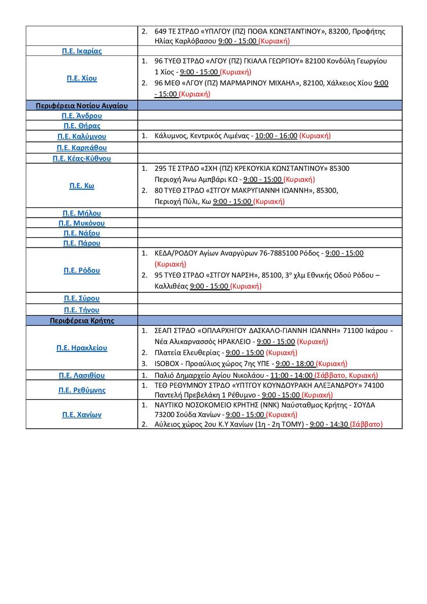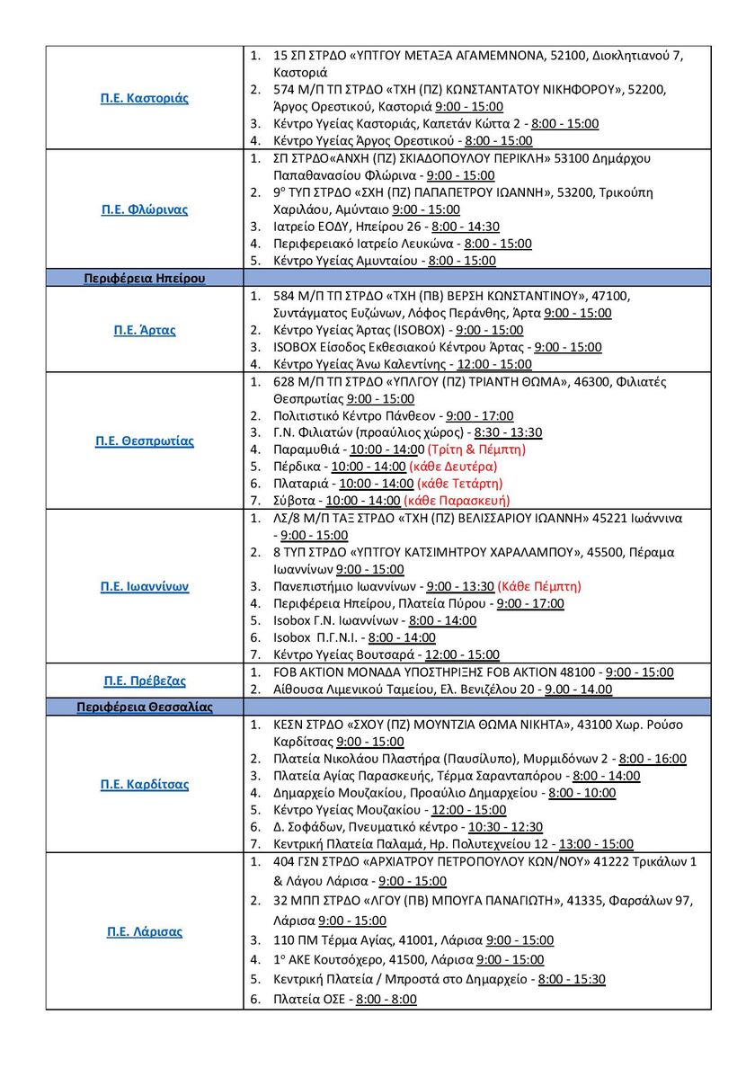 *Ενδέχεται να υπάρξουν τροποποιήσεις – αλλαγές στα σημεία και στο ωράριο των μαζικών δειγματοληψιών.