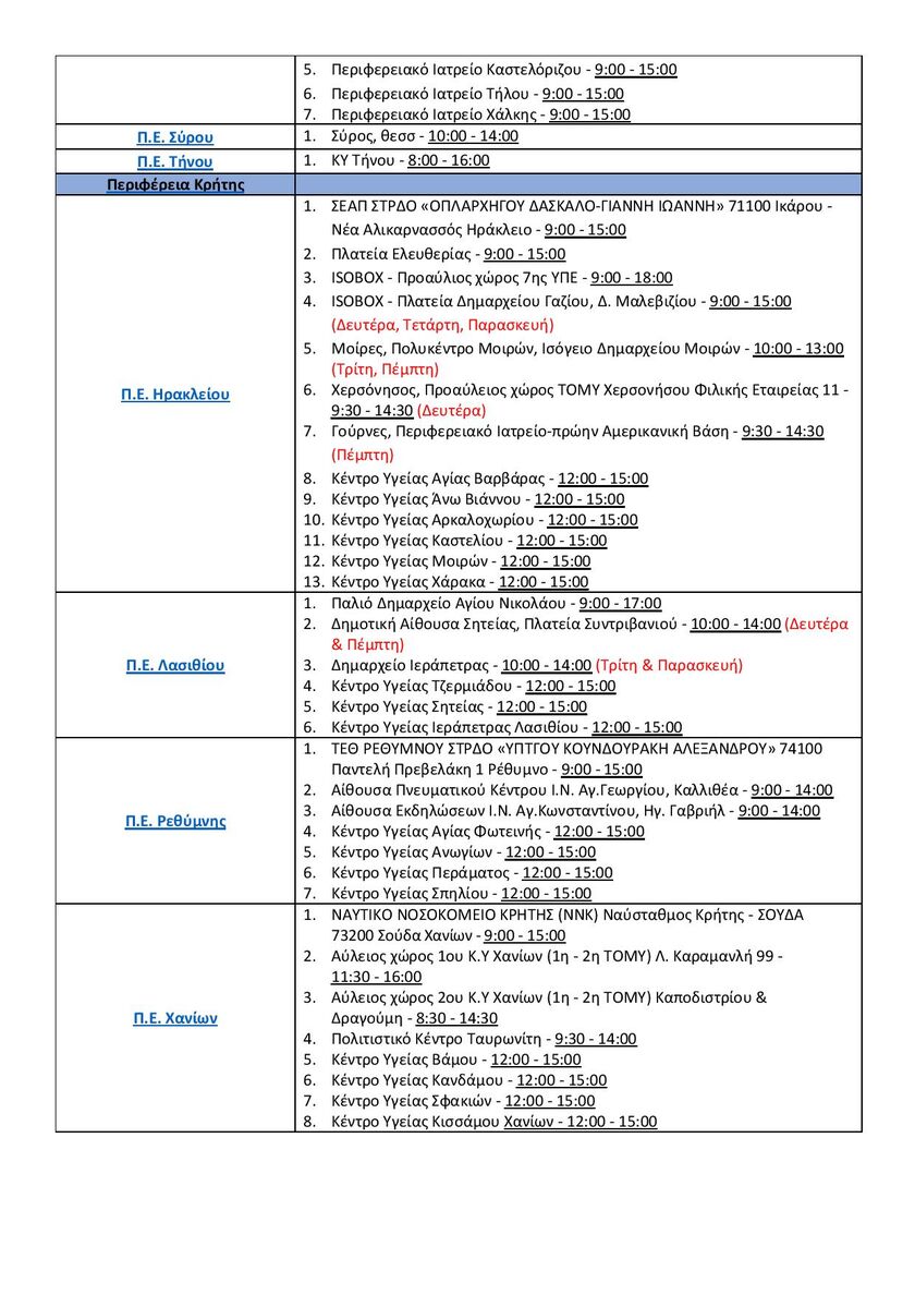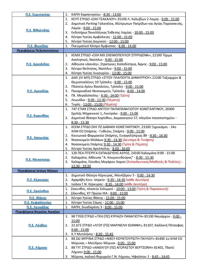 *Ενδέχεται να υπάρξουν τροποποιήσεις- αλλαγές στα σημεία και στο ωράριο των μαζικών δειγματοληψιών.