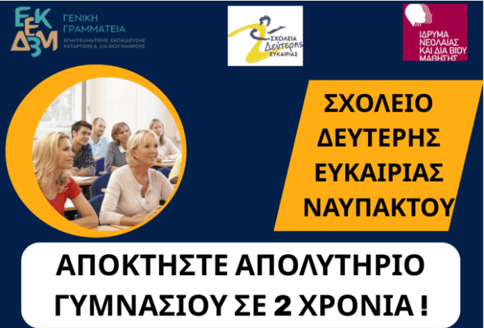 Όσες και όσοι ενδιαφέρονται να εγγραφούν στο Σχολείο Δεύτερης Ευκαιρίας Ναυπάκτου μπορούν να προσέρχονται στο σχολείο μέχρι τις 15 Σεπτεμβρίου 2025, τις εργάσιμες ημέρες και απογευματινές ώρες, από τις 5μ.μ. έως και τις 8.00μ.μ.