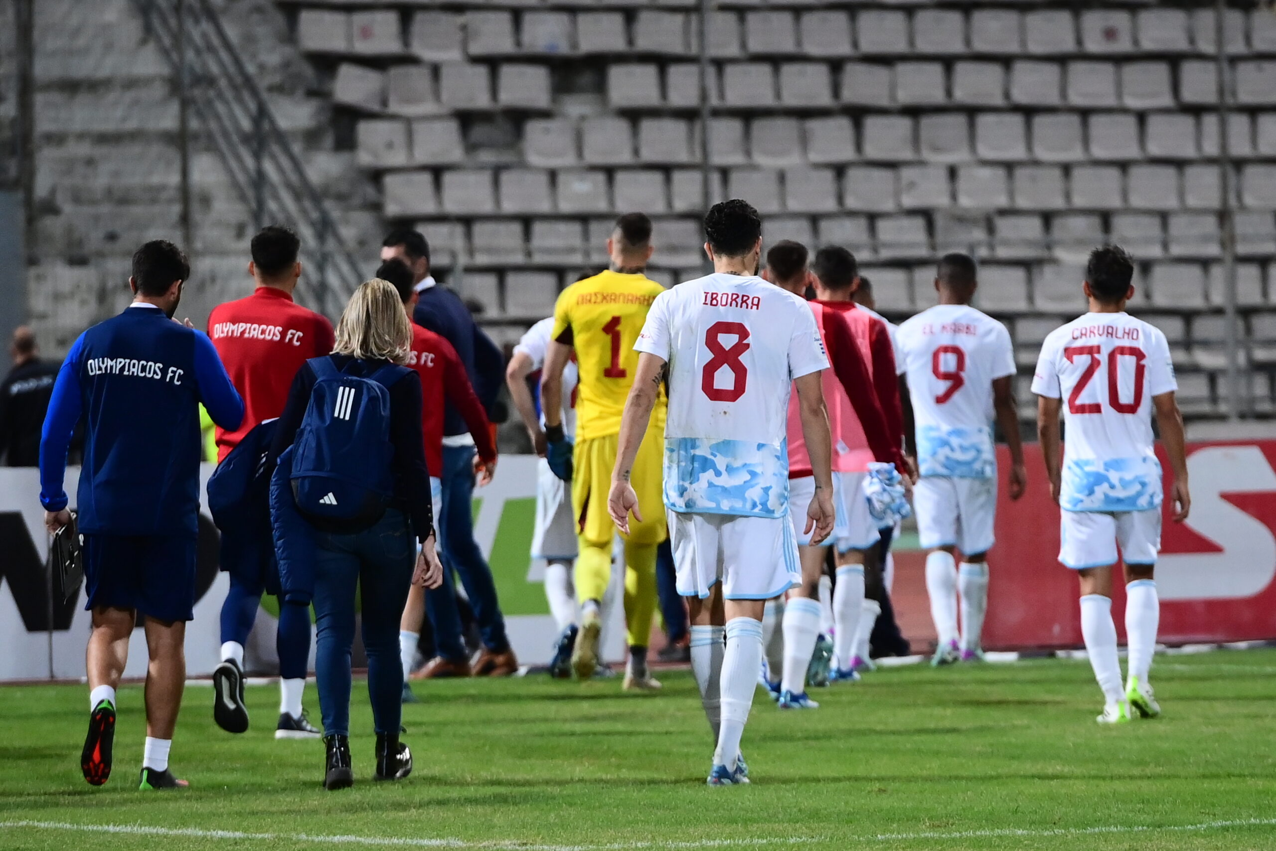 Απρόσμενη εξέλιξη είχε το ματς του Βόλου με τον Ολυμπιακό, καθώς λίγο πριν το φινάλε της αναμέτρησης, το παιχνίδι σταμάτησε ξαφνικά, με ισχυρές αστυνομικές δυνάμεις να πλησιάζουν κοντά στους δύο πάγκους και τους παίκτες να απομακρύνονται, έπειτα από σύσταση του διαιτητή Παπαπέτρου.
