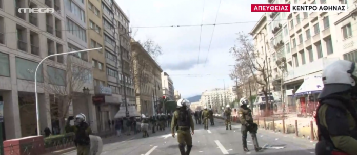 Μία ομάδα ατόμων εκτόξευσε στους αστυνομικούς μολότοφ και εκείνοι ξεκίνησαν να κάνουν ρίψη χημικών.