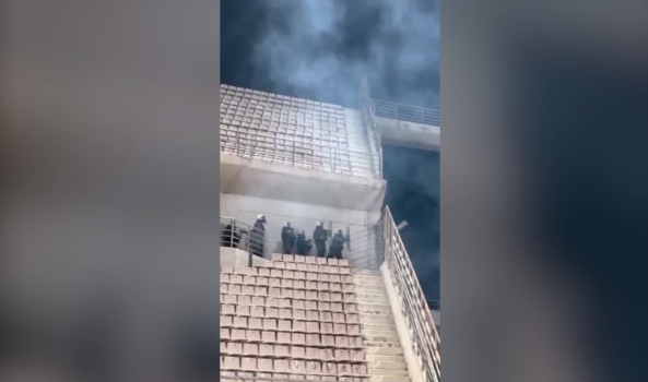 Αστυνομικοί να πετούν κρότου λάμψεις και δακρυγόνα μέσα στις εξέδρες του Πανθεσσαλικού.