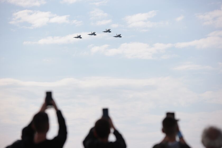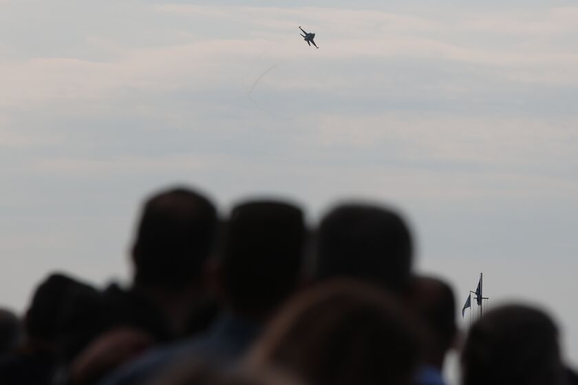 Ο ιπτάμενος της Πολεμικής Αεροπορίας εκτέλεσε μια σειρά εντυπωσιακών ελιγμών που «έκοψαν την ανάσα» των περισσότερων από 20.000 θεατών της στρατιωτικής παρέλασης.