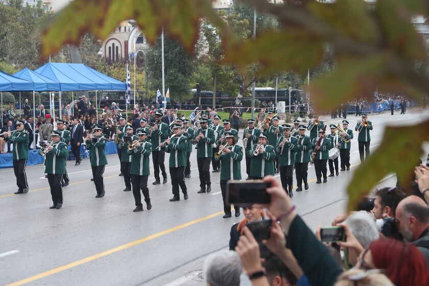 Η παρέλαση άνοιξε με τη Φιλαρμονική του Δήμου Θεσσαλονίκης και ακολούθησε ο έχων το γενικό πρόσταγμα των πολιτικών τμημάτων.
