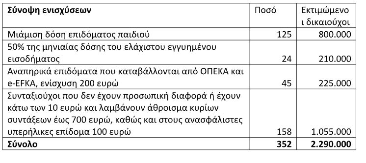 Οι έκτακτες ενισχύσεις θα καταβληθούν στις εξής ομάδες πολιτών:
