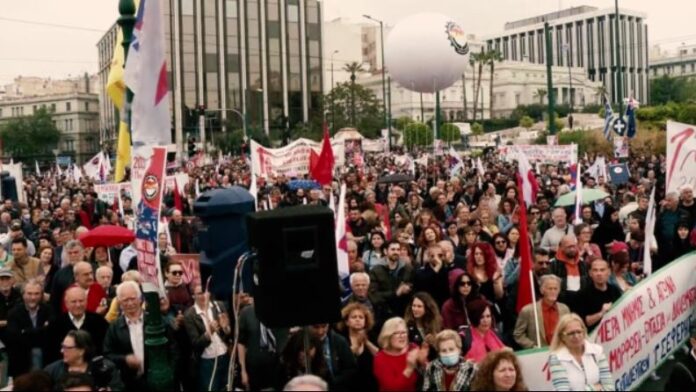 Με ένα τριαντάφυλλο στα χέρια χιλιάδες εργαζόμενοι, νέοι και φοιτητές αψήφησαν τον βροχερό καιρό και κατέβηκαν στο κέντρο για να τιμήσουν την εργατική πρωτομαγιά.