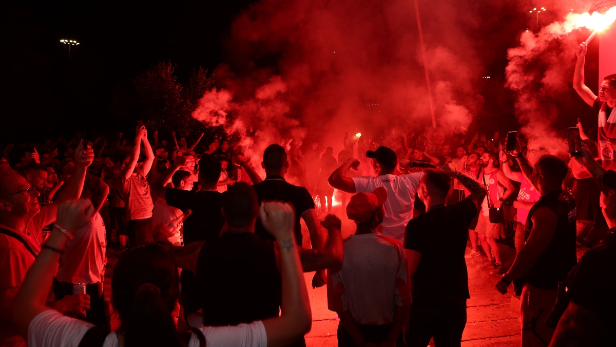 Οι φίλαθλοι των Πειραιωτών ενθουσιάστηκαν με τη νίκη της ομάδας τους και πήγαν στο Στάδιο Ειρήνης και Φιλίας για να υποδεχθούν το σύνολο του Γιώργου Μπαρτζώκα.