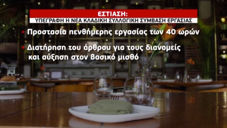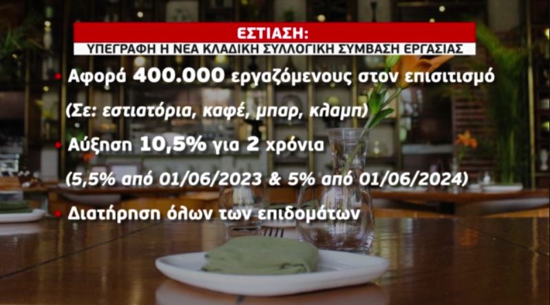 Την υπογραφή νέας κλαδικής συλλογικής σύμβασης εργασίας στην εστίαση, ανακοίνωσε η Πανελλήνια Ομοσπονδία Εργαζομένων στον Επισιτισμό-Τουρισμό (ΠΟΕΕΤ) και σημείωσε ότι η μεγαλύτερη κλαδική συλλογική σύμβαση της χώρας, και αφορά περίπου 400.000 εργαζόμενους.