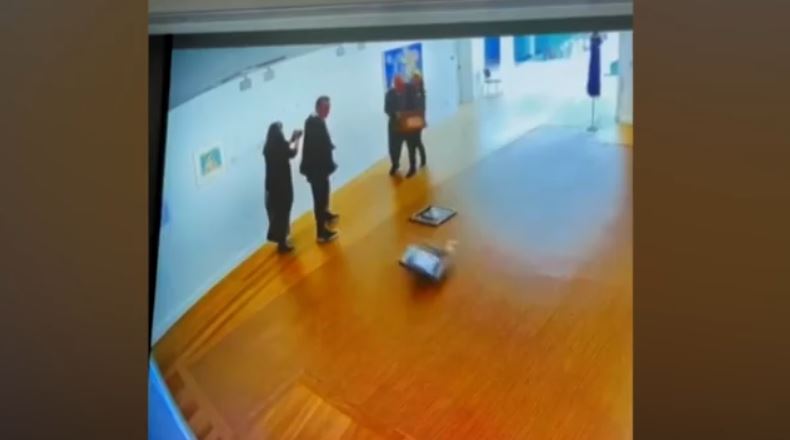 Σημειώνεται πως η έκθεση επαναλειτούργησε με τα έργα πεταμένα στο πάτωμα.