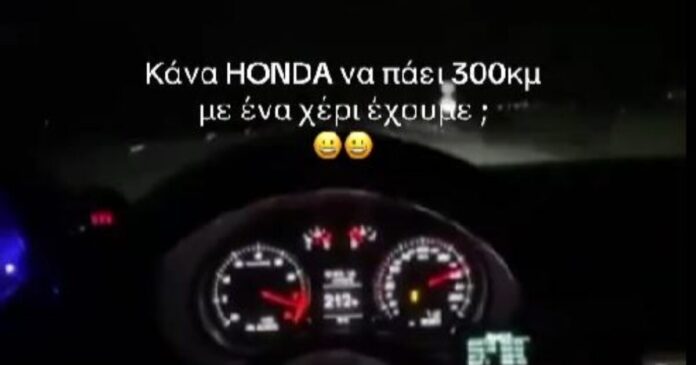 Ο ασυνείδητος οδηγός, έφτασε τα 304 χιλιόμετρα την ώρα στον Περιφερειακό της Θεσσαλονίκης και όπως φαίνεται στο βίντεο, ο οδηγός βιντεοσκοπεί την πορεία του κρατώντας το τιμόνι με το ένα χέρι κάτι για το οποίο γράφει και στη λεζάντα του βίντεο: «Κανά Honda να πάει 300χλμ με ένα χέρι έχουμε;».