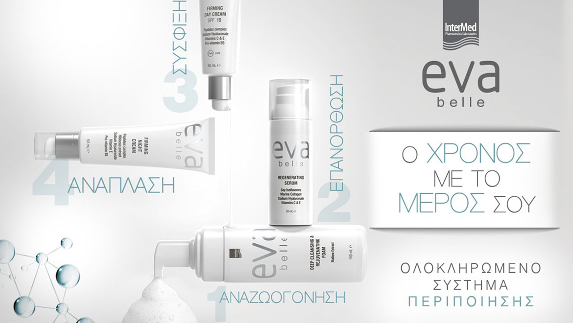 Μπορείτε να αντιμετωπίσετε αποτελεσματικά τα σημάδια γήρανσης και να βελτιώσετε την υγεία και την εμφάνιση του δέρματός σας χρησιμοποιώντας τη σειρά Eva Belle της φαρμακευτικής εταιρείας InterMed. Με την Eva Belle δημιουργείτε μια αποτελεσματική ρουτίνα περιποίησης βασισμένη στις ανάγκες σας.