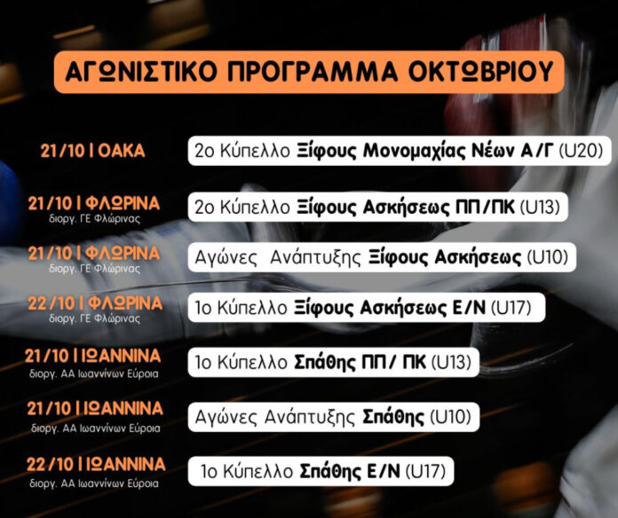 Το αγωνιστικό καλεντάρι των εγχώριων αγώνων για το μήνα Οκτώβριο: