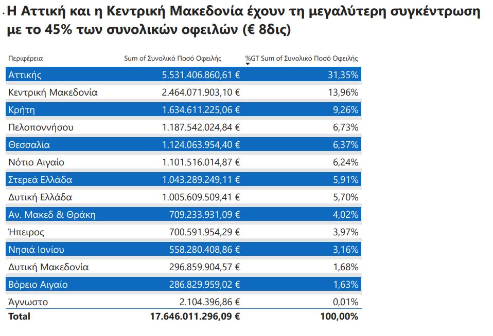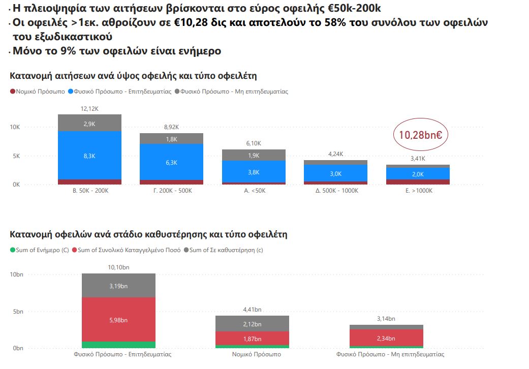 - Συνολικά, μέχρι το τέλος Ιουνίου του 2023 έχουν πραγματοποιηθεί 254 επιτυχείς ρυθμίσεις οφειλών οι οποίες αντιστοιχούν σε 2,33 δισ. ευρώ αρχικών οφειλών.