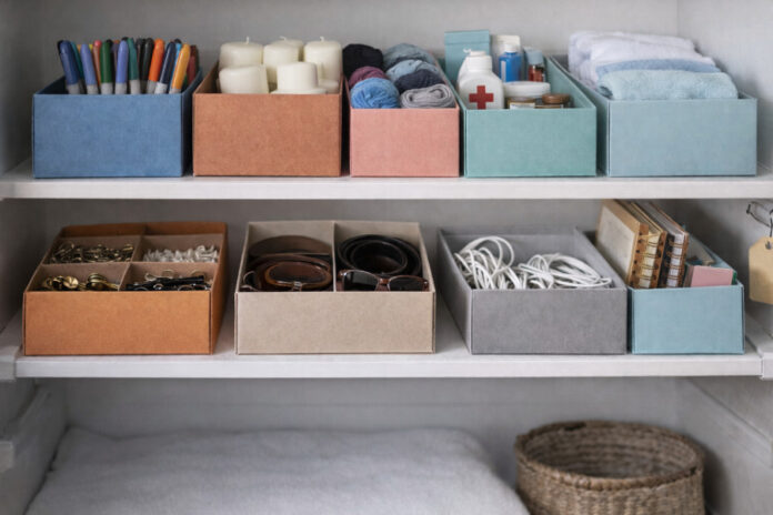 Αν έχεις ράφια με μικροαντικείμενα, τα κουτιά λειτουργούν σαν «συρτάρια χωρίς συρτάρι».
