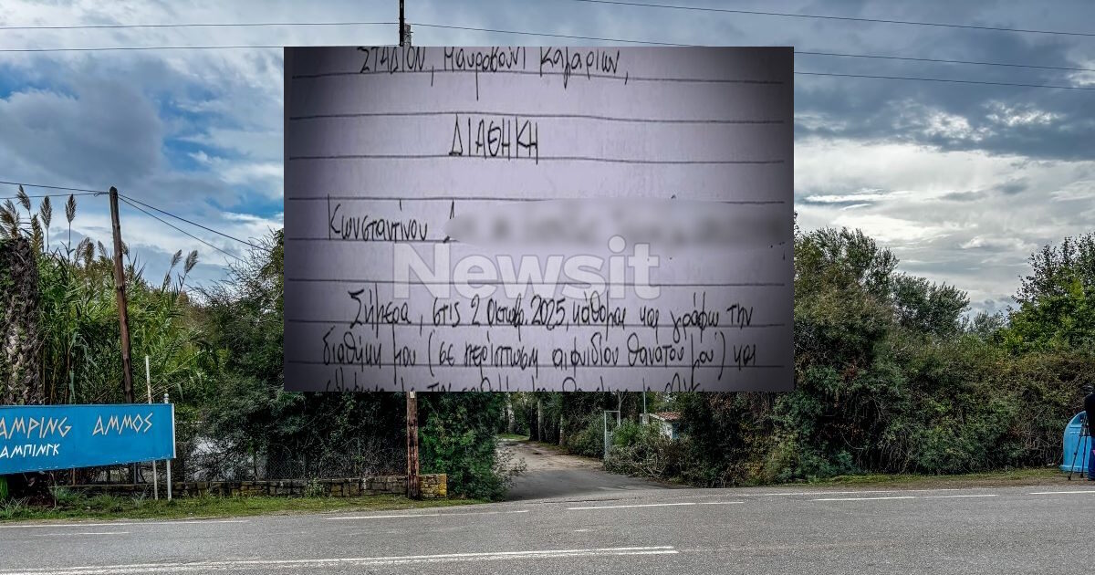 «Σήμερα, στις 2 Οκτωβρίου 2025, κάθομαι και γράφω την διαθήκη μου (σε περίπτωση αιφνιδίου θανάτου μου) και σύμφωνα με την επιθυμία μου, θα είναι η εξής», αναφέρει στις πρώτες σειρές της διαθήκης του ο 68χρονος και στη συνέχεια ορίζει τους κληρονόμους του.