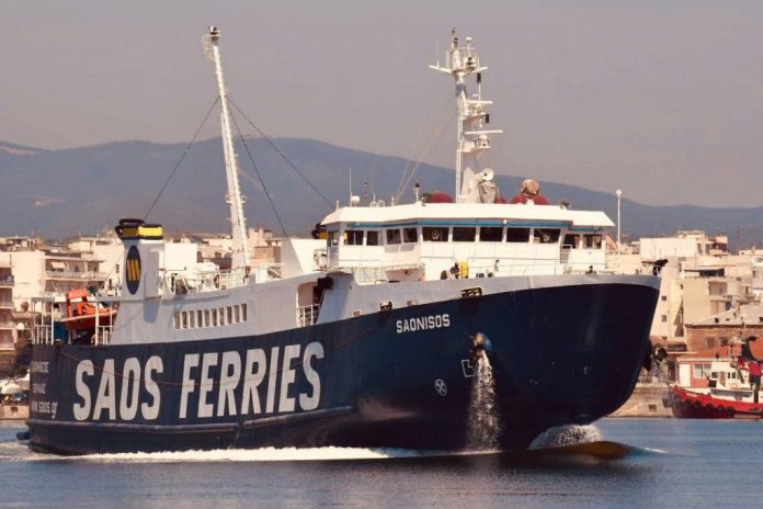Πρόκειται για το επιβατηγό – οχηματαγωγό πλοίο «ΣΑΟΝΗΣΟΣ» που «καρφώθηκε» στο φανάρι του λιμανιού του νησιού, κατά τη διαδικασία πρόσδεσης. Στην περιοχή επικρατούσαν ισχυροί βόρειοι άνεμοι 7 με 8 μποφόρ.