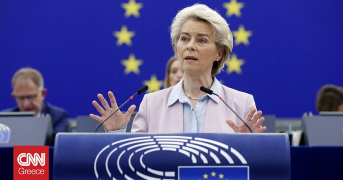 «Αποδυναμώνουμε την ικανότητα της Ρωσίας να διατηρήσει την πολεμική της μηχανή», ανέφερε η κ. φον ντερ Λάιεν, προσθέτοντας ότι «με εννέα πακέτα κυρώσεων σε ισχύ, η ρωσική οικονομία πηγαίνει προς τα πίσω. Και για να διατηρήσουμε αυτή την ισχυρή πίεση, προτείνουμε δέκατο πακέτο μέτρων. Με νέες εμπορικές απαγορεύσεις και ελέγχους εξαγωγών τεχνολογίας στη Ρωσία. Το πακέτο αυτό είναι συνολικής αξίας 11 δισεκατομμυρίων ευρώ. Προτείνουμε, μεταξύ άλλων, περιορισμούς εξαγωγών σε ηλεκτρονικά εξαρτήματα που χρησιμοποιούνται σε ρωσικά οπλικά συστήματα – όπως τα drones, οι πύραυλοι, τα ελικόπτερα».