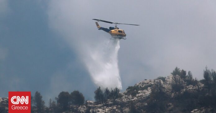 Για την κατάσβεση της φωτιάς έχουν κινητοποιηθεί 33 πυροσβέστες με 10 οχήματα και ένα πεζοπόρο τμήμα ενώ ρίψεις νερού πραγματοποιεί ένα ελικόπτερο.