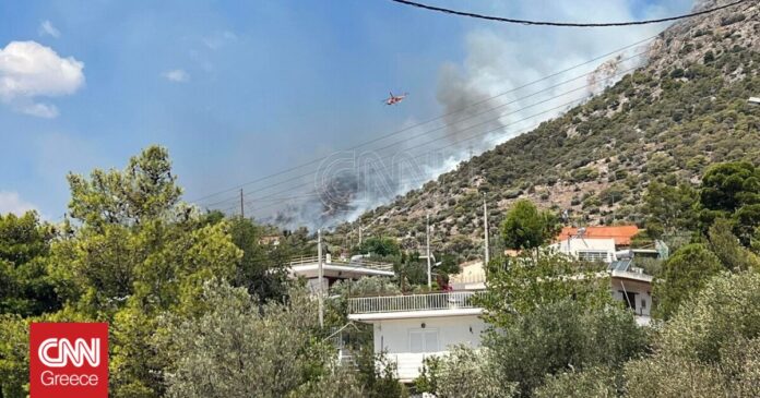 Ειδικότερα, το μήνυμα από το 112 αναφέρει: «Αν βρίσκεστε στην Άνω Βλυχάδα εκκενώστε τώρα προς Μέγαρα μέσω Παλαιάς Εθνικής Οδού Αθηνών-Κορίνθου»