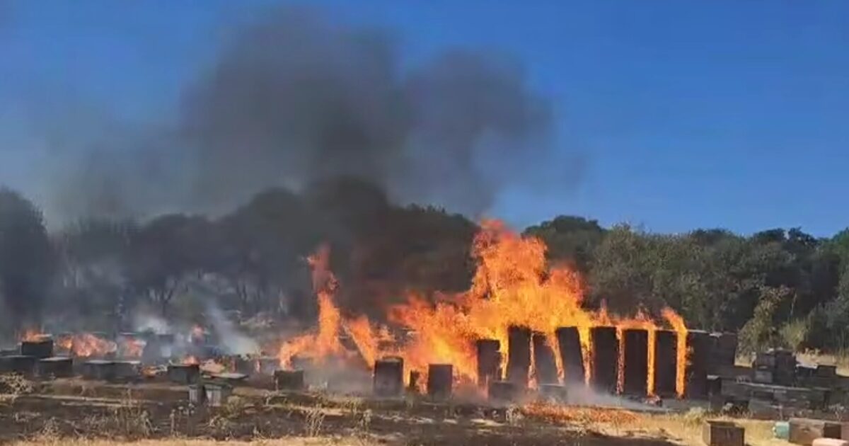 Παρανάλωμα του πυρός έγιναν μελίσσια στον Χορτιάτη της Θεσσαλονίκης, από τη μεγάλη φωτιά που ξέσπασε νωρίς το μεσημέρι του Σαββάτου (23.08.2025).