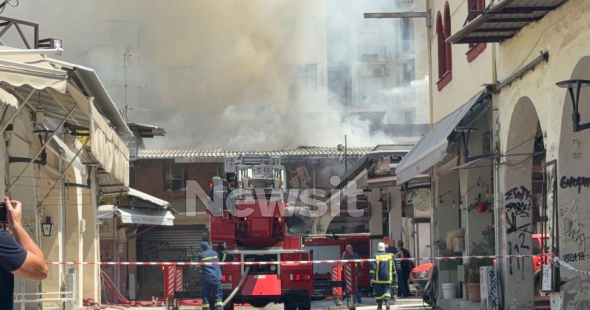 Η φωτιά ξεκίνησε, από άγνωστη μέχρι στιγμής αιτία, από κατάστημα εστίασης και επεκτάθηκε γρήγορα.