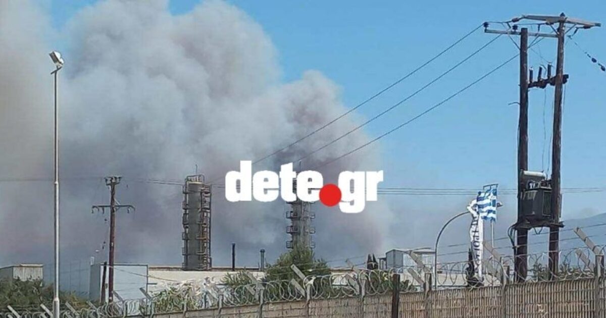 Οι φλόγες και οι καπνοί από την φωτιά είναι ορατοί από μεγάλη απόσταση, αναφέρει το dete.gr.