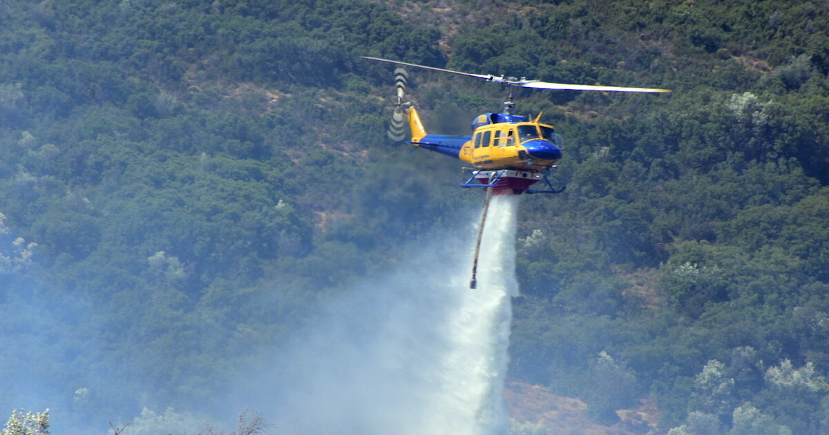 Ρίψεις νερού πραγματοποιούν δύο αεροπλάνα και ένα ελικόπτερο.